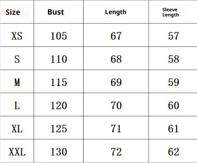 ✅ XS — Bust: 105 cm | Length: 67 cm | Sleeve: 57 cm